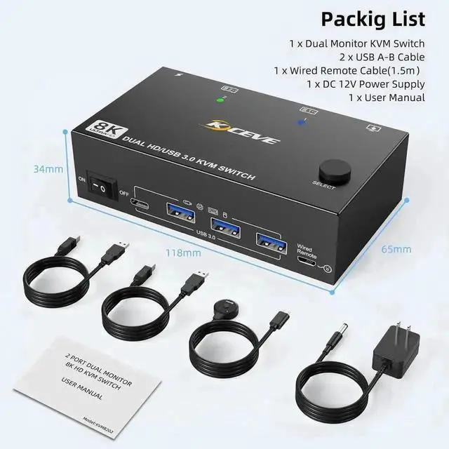 Our dual monitor kvm switch with 4 USB 3.0 ports (for connecting USB devices, 3 USB A+1 USB C)Supports ultra-fast USB 3.0 data transfer, Data transfer speeds up to 5Gbps, and is backward compatible with USB 2.0 / 1.1.
