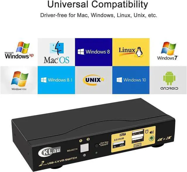 4K KVM Switch Computer Switch for 2 Computers KMV Switches 4K KVM for Mac Computer Monitor Switch USB KVM Switch KVM USB Switch USB C Switcher 2 Computers USB-C Switch