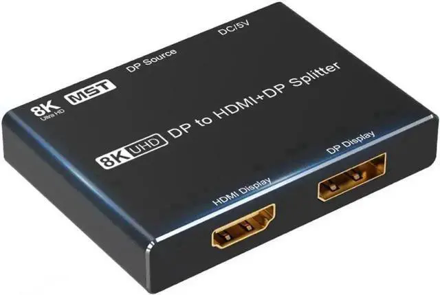 DisplayPort HDMI Splitter 8K MST SST 1In 2Out Directional DP 1.4 8K@30Hz 4K@120Hz to DisplayPort HDMI 8K 2.1 1440P@165Hz Directional Converter Switch Multi Screen Transfer