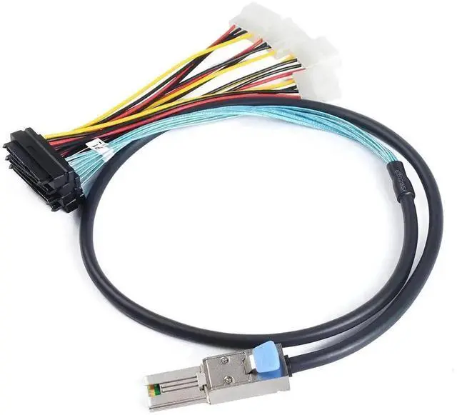 Mini SAS SFF-8088( 26 Pin) to 4x SFF-8482( 29 Pin) with extra 4 power cable, cable length 1M/3.3Ft