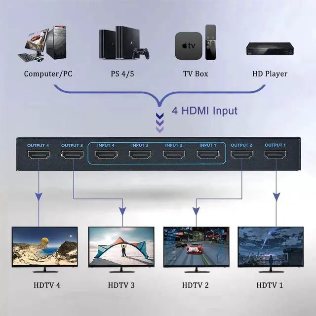 • The HDMI matrix 4K can be thought of as consisting of HDMI switcher and HDMI splitter.