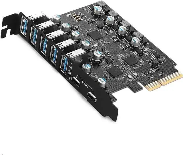 7-Ports Expansion Card: LUOM PCI-E expansion card provides 7 external USB 3.2 Gen 2 Ports (5 USB Type-A and 2 USB Type-C Ports) for your computer. You can connect a keyboard, mouse, external hard drives, CD/DVD drives, webcams, USB printers, scanners, game controllers, USB VR, digital cameras, etc