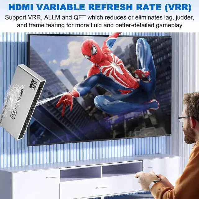 1. The HDMI 2.1 switcher can connect up to 5 HDMI devices to a single TV or monitor at the same time for switching