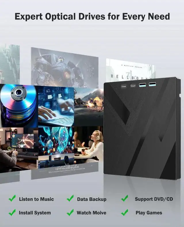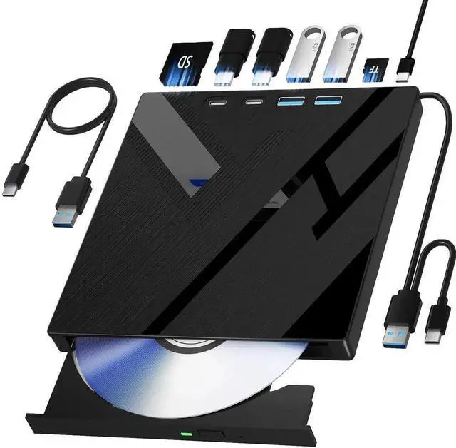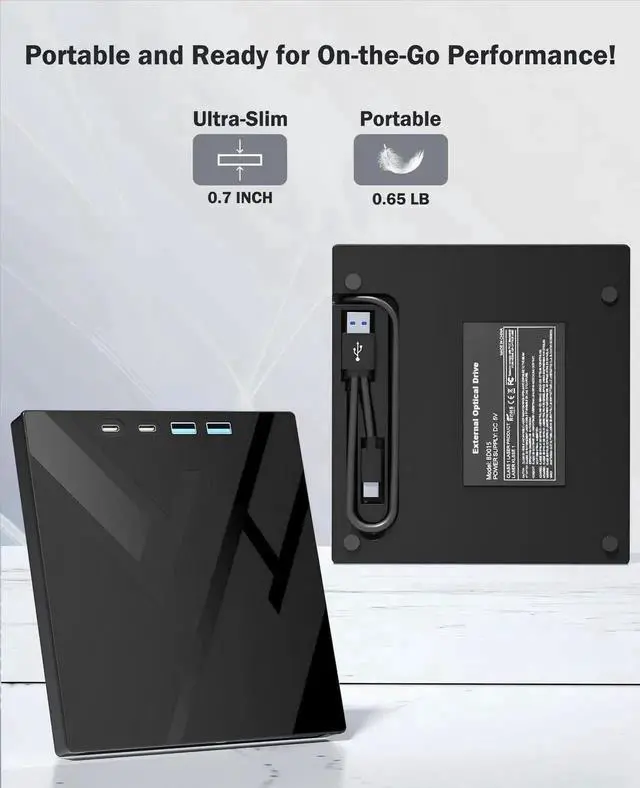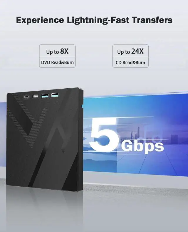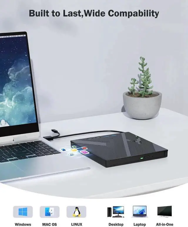 - [Compact & Portable]Our slim, lightweight design is ideal for on-the-go use. Whether you're at home, in the office, or on the move, you can easily carry this portable dvd player with you. Our high-quality USB 3.0 external dvd player for laptop is the ideal solution for all your CD/DVD reading and writing needs - just as convenient as an internal optical disc drive.
