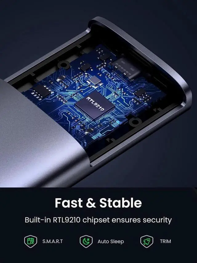 Security & Stability: This hard drive enclosure adopts advanced RTL9210 chip with short-circuit, over-current and multi-protection to ensure the safety of your SSD and valuable data, and supports UASP/ Trim with high transfer speed