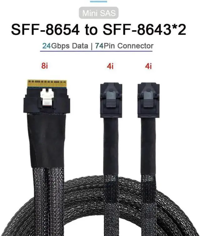 PCI-E Ultraport Slimline SAS Slim 4.0 SFF-8654 8i 74pin to Dual SFF-8643 4i Mini SAS HD Cable PCI-Express
