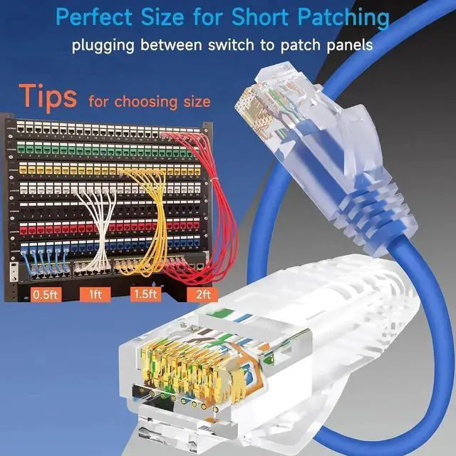 Slim Cat6 Ethernet cables of the 6 inch length are typically used in server network rooms for plugging between patch panels. Could also used for connecting modem to a router, switch, server in the home lab or office network.
