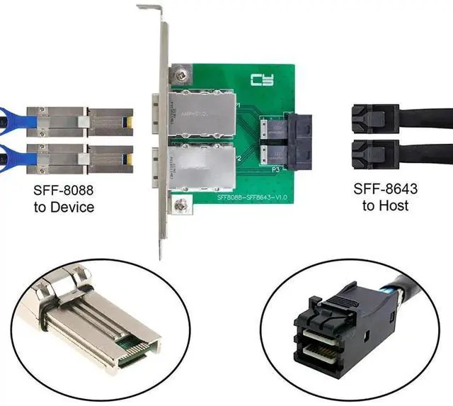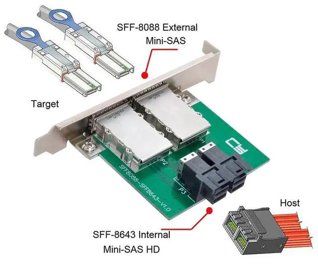 • External 8088 to internal 8643 adapter, will work both on the host and device side.