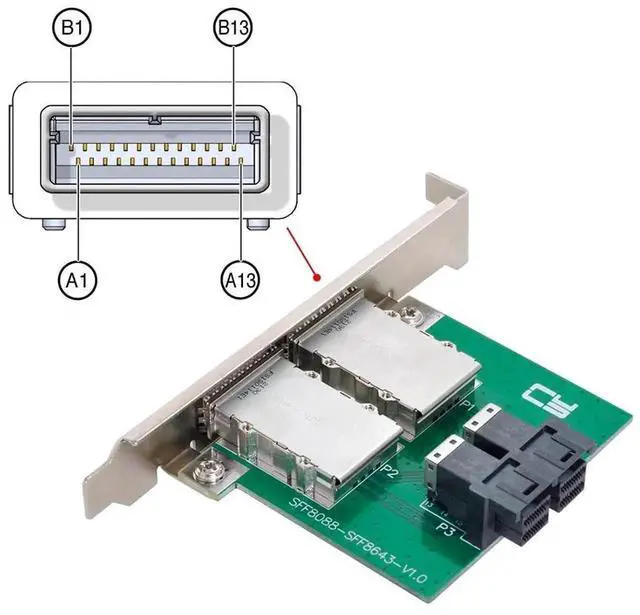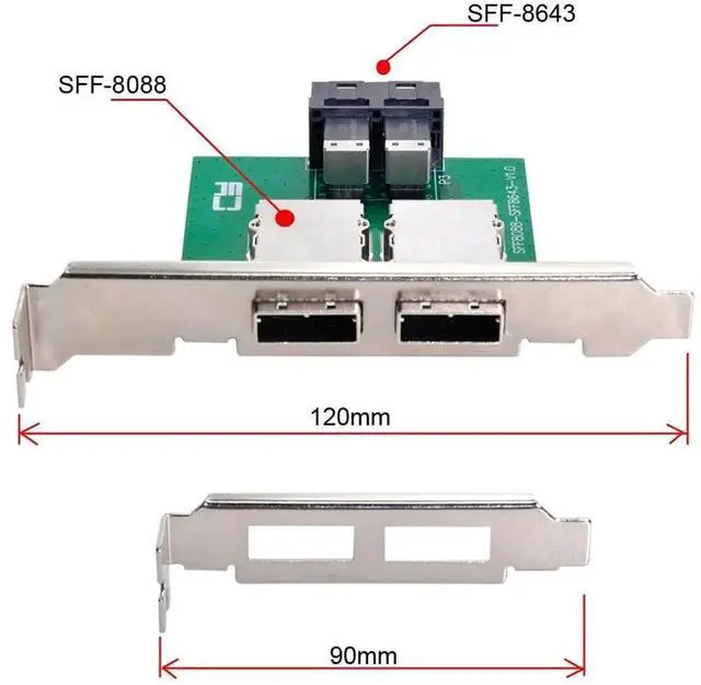 2-Ports SFF-8643 to SFF-8088 Adapter with Full PCI Slot Profile Mounting Bracket;