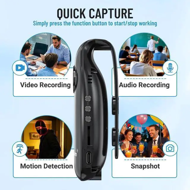 Body Camera 1080P 64GB Action Camera POV Cam Wearable Camcorder with Magnetic Pocket Portable DV for Sport,Cycling, Pets,Walking , Travaling with Audio and Video Recorder