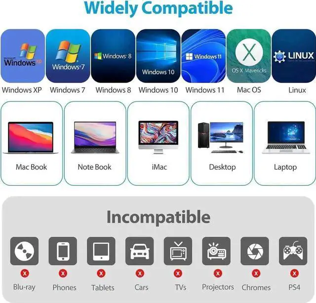 • [Wide Compatibility] Compatible with Windows 10/8/7/XP/98/2003/Vista/Linux/Mac OS. (Note: Blu format -ray is not supported). Maximum DVD reading speed 8X; Maximum CD reading speed 24X and maximum CD writing speed 8X.