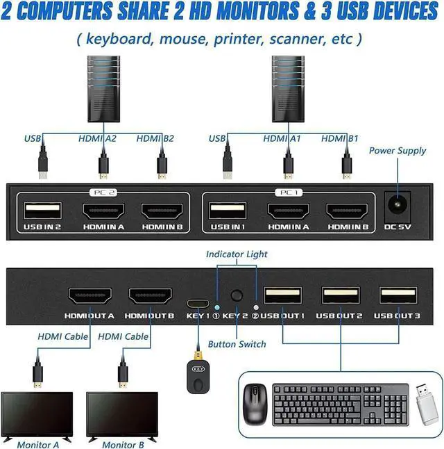 1* Dual Monitor HDMI KVM Switch,