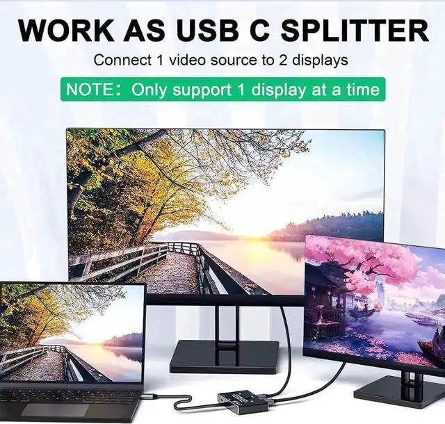 • [8K Ultra HD Video Output] you can output max 8K@30Hz 4K@120Hz 1080P@165Hz via our USB-C Switch/Splitter to your USB-C Displays. The maximum resolution of your output depends on your Source device, monitor and cable used.