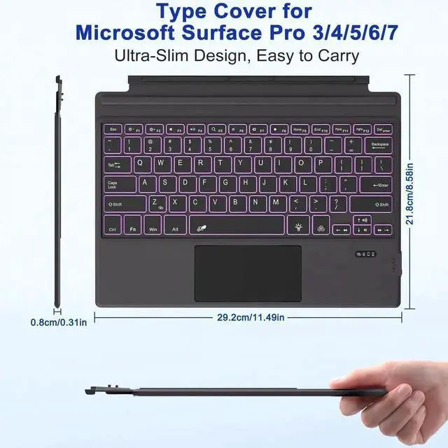 Surface Pro 3 Keyboard -Type Cover for Surface Pro 7 Plus 7/6/5/4/3, 7 Color Backlit Bluetooth Ultra-Slim Portable Magnetic Surface 3 Keyboard with Trackpad, Rechargeable