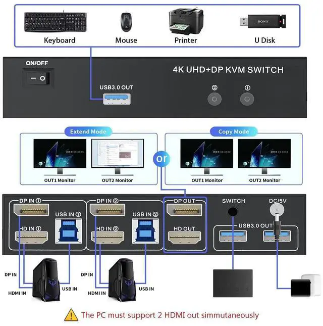 | Item model number | 4K USB3.0 DP KVM Switch 2 PC 2 Monitors |