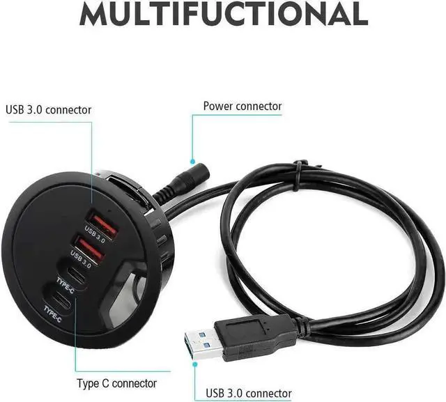 • Grommet Desk-Fit USB 3.0 Hub (Diameter 2.36 or 60MM) 2 Port Type A&2 Port Type C Compatible Charging and Data Transmission Includes 5V/2A Power Adapter
