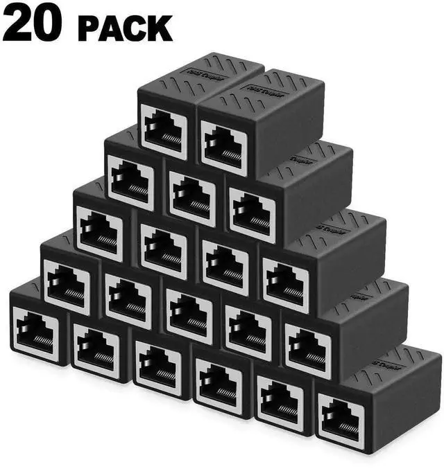 RJ45 Inline Coupler Ethernet Extender Cat7 Cat6 Cat5e Ethernet Coupler Female to Female(RJ45 Coupler Black 20 Pack)