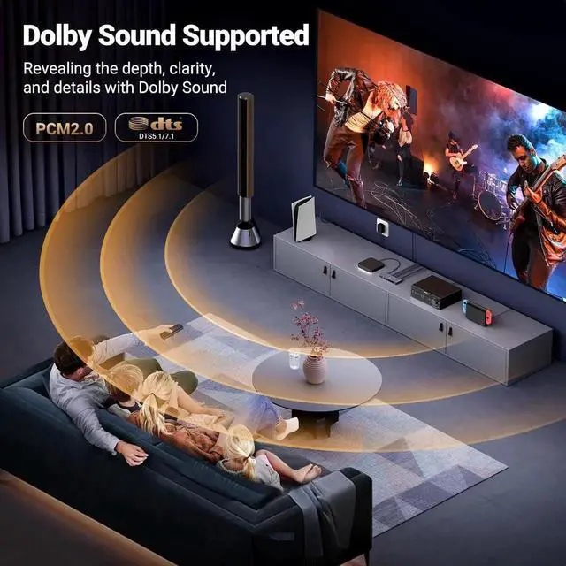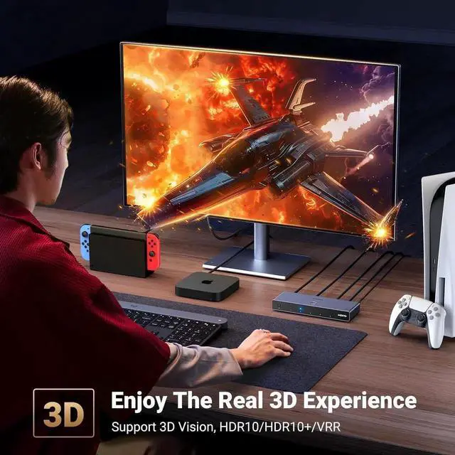 Compatible with Multiple Devices: This HDMI 2.1 switch works with most devices with a standard HDMI interface. Compatible with Nintendo Switch/Switch 2, PS5/PS4/PS3, Xbox 360, Xbox One, Blu-ray player, Roku TV, Apple TV, Firestick, PC, laptop, HDTV, monitors, projectors, etc