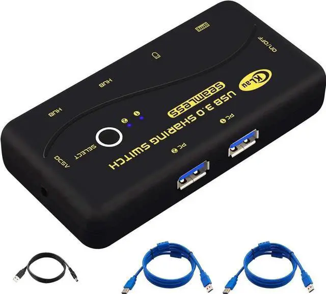 Package content: 1 x USB 3.0 sharing switch (2 in 4 out) + 2 x USB 3.0 cables ( 1.5 m, AM - AM) + 1 x power cable + 1 x manual