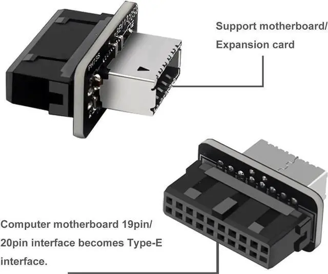 Connector B (front panel): USB 3.1 A-Key 20 pin front panel female header; CompatibilityCompatible with all of common motherboards with USB 3.0 internal19 pin header.