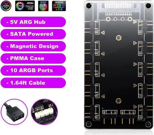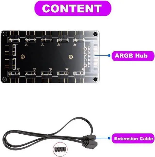 2. This hub is only compatible with 3pin 5V addressable RGB headers or controllers. Please DO NOT connect to 12V RGB components