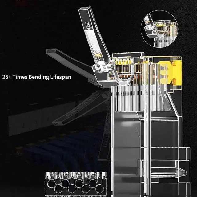Use Without Worry: 50u gold plated contacts maintains a superior and reliable data transmission by preventing corrosion last over time; Clear impact-resistant polycarbonate housing is durable for crimping. The connector locking clip can be bent many times without breaking