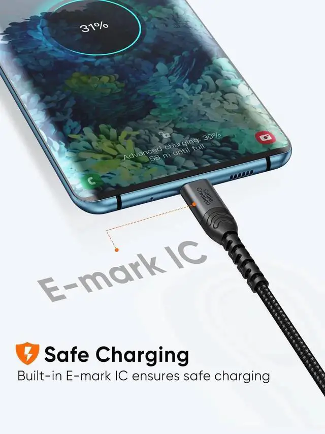 The cable supports fast charging up to 3A(60W), but please make sure that your devices and wall charger both support fast charging. It can fast transfer data smoothly at a speed of 0.48 gigabits per second. Double-braided exterior with a tested 25000+ bend lifespan, premium aluminum alloy shell and gold-plated connector add additional durability and stability to this usb c charging cable, which make it more durable than normal usb-c cables. The cable has two different lengths (1ft, 6.6ft), which can be used in different scenarios to avoid troubles caused by the length of the cable being too long or too short. The type-c cable is compatible with Switch, Galaxy S22/ S22 Ultra/ S21/ S21+/ S21 Ultra/ S20/ S20+/ S20 Ultra/ S10/ S9/ S8/ S8+/ Note 20/ Note 20 Ultra/ Note 10/ Note 9/ Note 8/ A80, Pixel 2/ 2XL/ 3/ 3XL/ 3a/ 3a XL/ 4/ 4 XL/ 5, Macbook Air/ 13'', iPad Pro 2020/2018, iPad Air 2020 10.9"(Gen 4) and other devices with USB-C port. Please note: this cable is USB C at both ends, Not a USB A to USB C cable.