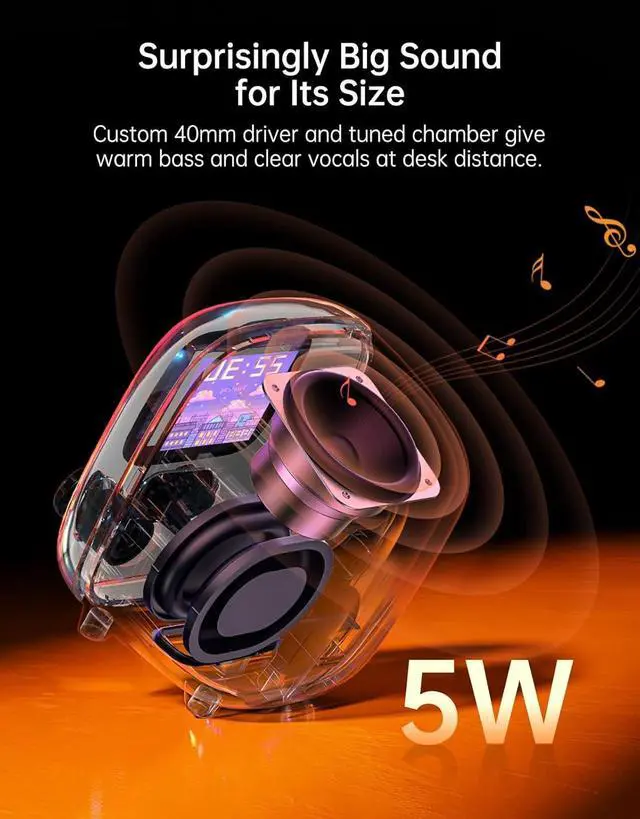 Powerful Sound QualityDelivers clear, room-filling audio with balanced bass and crisp highs. Small in size but loud enough for bedrooms, desks, and casual gatherings.