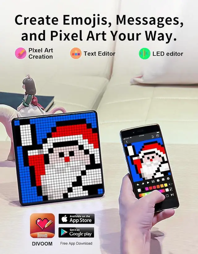 Design Pixel Artwork - This led display sign is an excellent way to exercise creativity. On the Divoom app, you are given the option of designing you own image, animation and scrolling text message - all offering a large variety of options.
