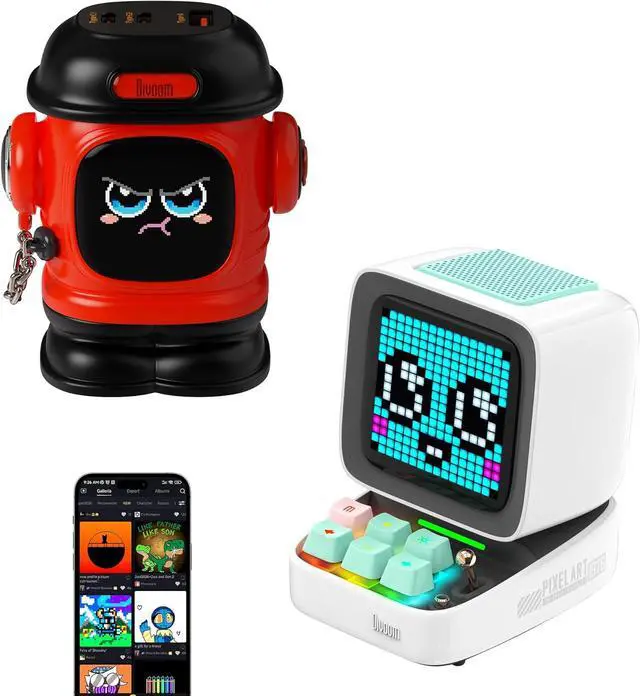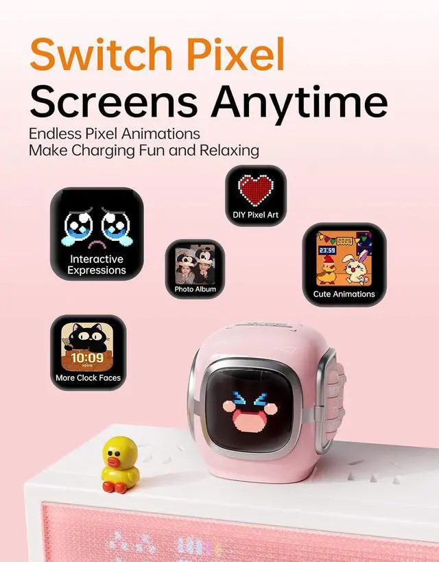 Adorable Pixel Display with DIY Clock:Retro diving helmet design with a pixel screen. Customize with the Divoom appchoose from 1000+ designs or create your own! Perfect as a pixel charger for desk decor. Note: Screen lights up only when plugged in.
