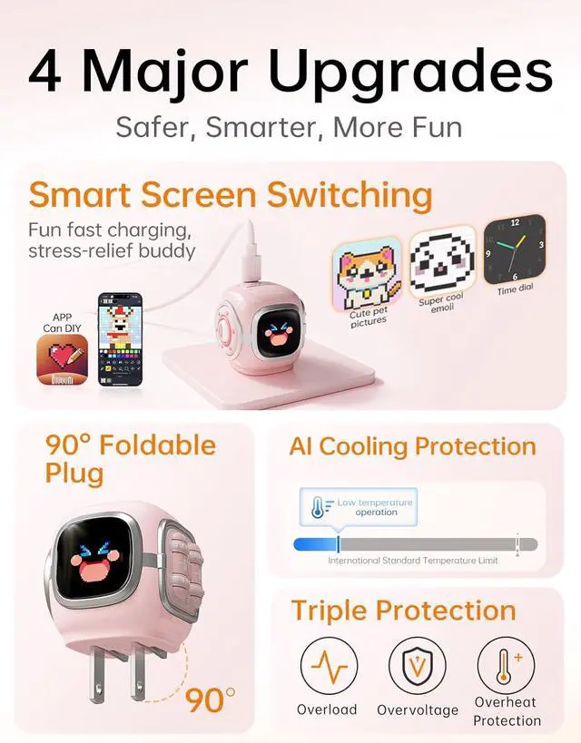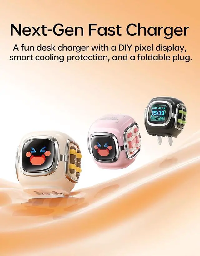 Divoom Dipow 35W,2026 New USB C Charger Block, Fast GaN Charger with Pixel Screen, Cute Foldable Compact Power Adapter for iPhone 17/16, Galaxy S25/S24, Pixel 9/8, MacBook Air, iPad ProPink
