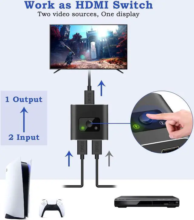 Techole hdmi splitter. HDMI Switch 2 In 1 Out 1080P 4K HDMI Switcher Box Auto Splitter Switcher Plug And Play. 2 in 1 out hdmi switch, 4k 1080p hdmi switch, 2 port hdmi switcher, hd clear hdmi switch box, auto hdmi splitter, hdmi switch for hdcp, tv monitor projector hdmi switch, high speed hdmi switcher, hdmi switcher for ps3 xbox tv box, 4k 2k 30hz hdmi switch