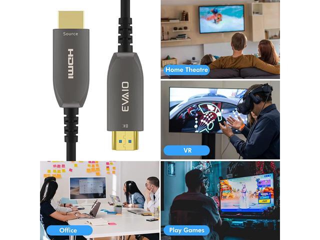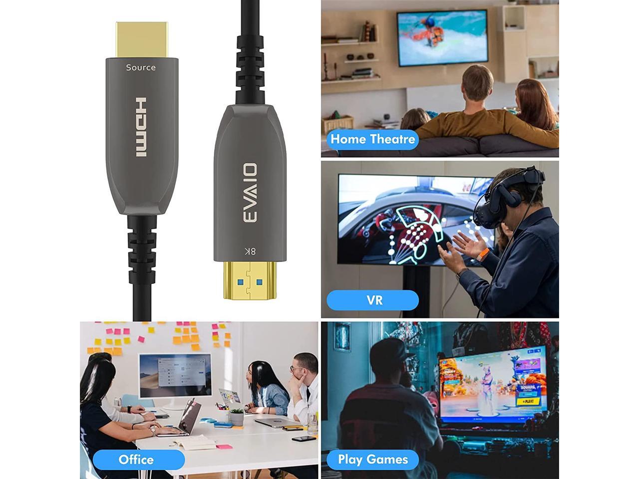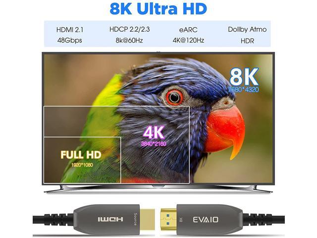 - EVAIO 8K Fiber Optic HDMI Cable supports HDR10, 8K@60Hz, 4K@120Hz, DTS-HD, HDCP 2.2 & 2.3, Dolby Vision, IMAX ENHANCED, Dolby Atmos, Dynamic HDR, eARC, 3D video display etc