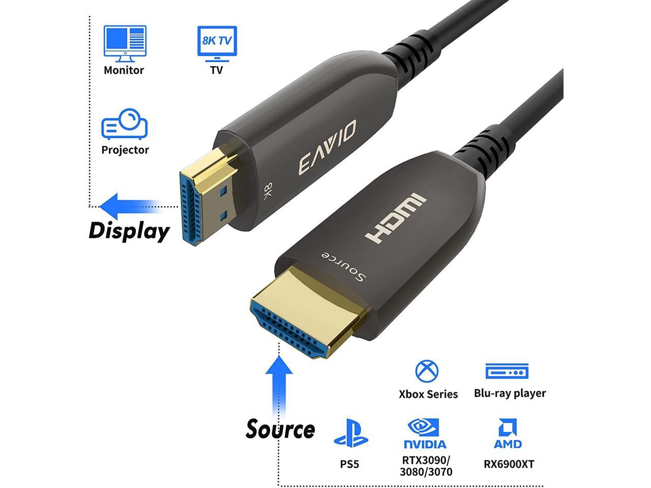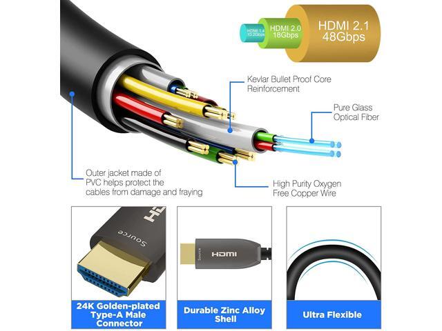 - This HDMI 2.1 Fiber Optic Cable supports ultra high speed 48Gbps, Backward compatible with earlier versions of HDMI and can be used with any HDMI devices.