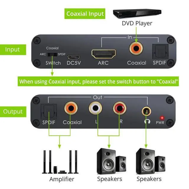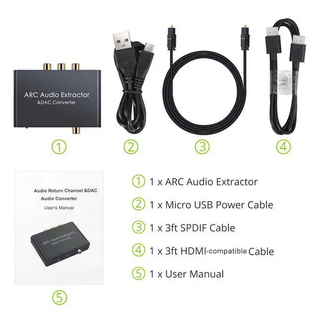 • DAC Audio Converter ARC Audio Extractor HDMI-compatible Optical SPDIF Coaxial to Analog 3.5mm Digital to Analog Audio Converter