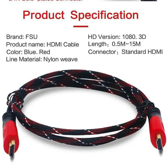 HOT High speed 0.5 /1/ 1.5 /2/3/5M HDMI cable Gold Plated Plug Male to Male 1.4 Version HDMI cable 3D 1080p for HDTV XBOX PS3
