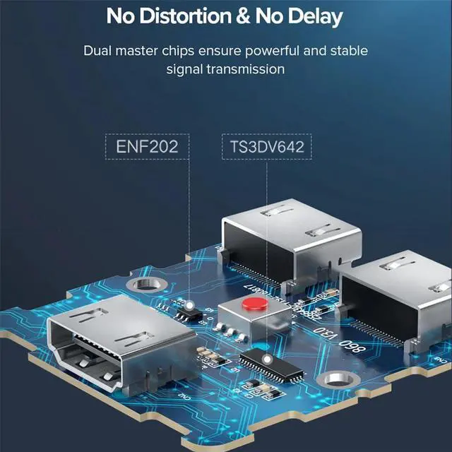 Dual master chips ensure powerful and stable signal transmission, no need to worry the blue screen and distortion.