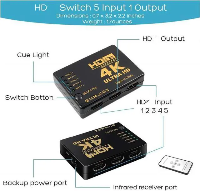 This HD Switch allows you to connect up to 3 or 5 HD sources with one HD display, seamless transitions between gaming, television and more.