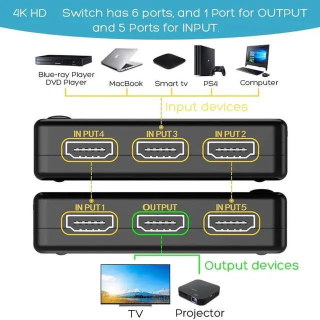 Use this HD switch to connect your game consoles, laptop, desktop, and other HDMI-compatible devices to your high definition television.