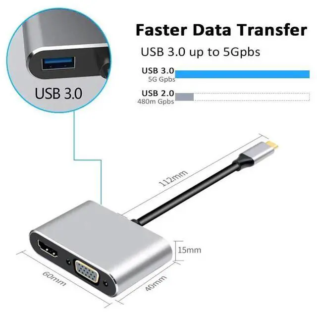 Interface: type C 3.1 to HDMI-compatible + VGA