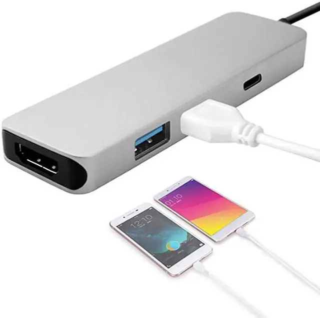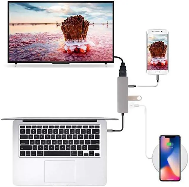 1. Multi-Function- USB C to HD Adapter with 2 USB 3.0 and PD charging port, enable insert 4 devices simultaneously. HD port allow you to mirror or extend your screen and directly stream 4K UHD or Full HD 1080p video to HDTV, monitor or projector; PD Charging port can quickly charge your connected devices while displaying or transferring data; 2 USB 3.0 ports allow you to connect keyboard, mouse, thumb drive, hard disk to your MacBook Pro or other Type-C devices when you connect to HD.