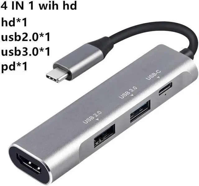 4in1 with hd type2: 1*USB 3.0 + 1*USB 2.0 + 1*USB-C PD + 1*HDMI-compatible4k