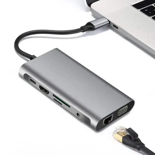 10 in 1 USB Hub 3.0 Type C Hub to VGA +RJ45 Type C to 4K HD PD SD TF Card Reader 3.5 mm Audio VGA USB 3.0 Hub#50