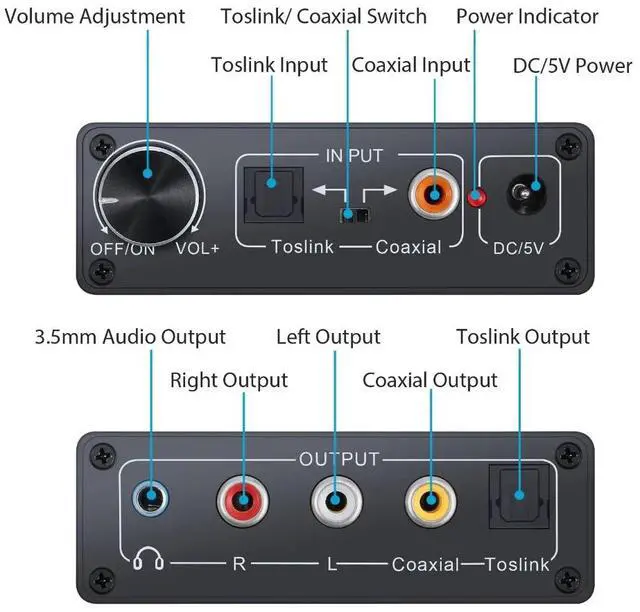 6. Supports coaxial input to Toslink output.