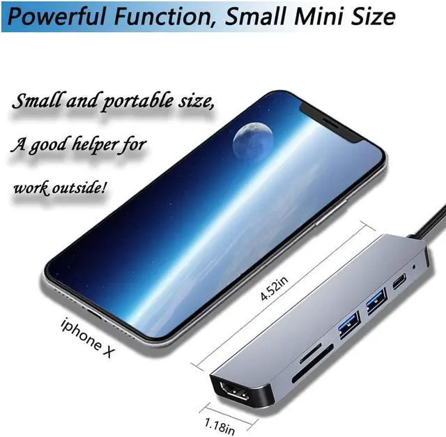 (C) 6-in-1 2*USB 3.0 + 1*USB-C PD + 1*TF + 1*SD + 1*HDMI-compatible4k