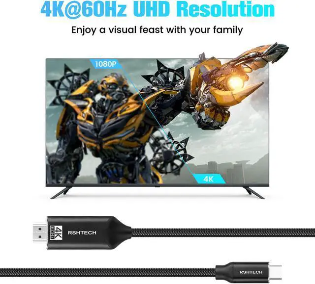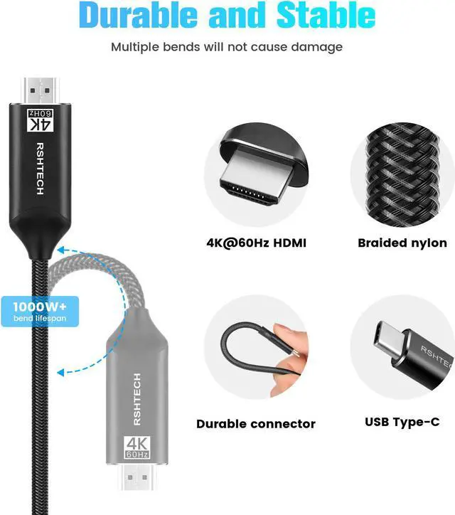 RSHTECH Type C to HDMI cable , has both durability and ductility, joint can bear more than 1000W+ bend test, making the cable joints more durable.