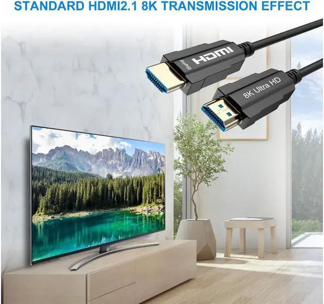 Specification: Compliant with HDMI 2.1 The highest bandwidth 48Gbps (single channel 12Gbps ) Ultra High Definition support 8K@60Hz, 4K@120Hz Support HDCP 2.2 /CEC/EDI The waistline streamlined metal shell, ergonomi The optical transmission of high frequency signal, no electromagnetic interference Outer diameter 4.8 mm photoelectric composite cable structure, wire convenient and convenient engineering wiring