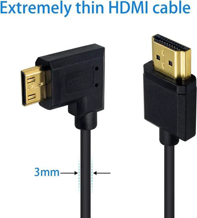 Ultra-Thin short 90 degree hdmi to mini hdmi Cable: Left angle mini HDMI male to HDMI male cable. The 4K mini HDMI cable supports bidirectional transmission from mini HDMI to HDMI or from HDMI to mini HDMI, Length: 15cm/6 inch.