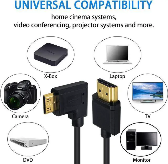 4K HDMI to Mini HDMI Cable has wide range of compatibility, which is compatible with Projector, Monitor, Digital Camcorders, Digital Cameras Game Consoles and so on.