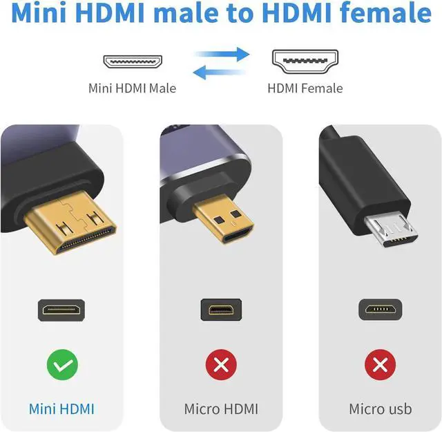 The Mini HDMI Male to HDMI Female adapter is plug-and-play, with an LED light and a punched design, which is very delicate. The aluminum alloy shell is convenient for carrying cameras. It is very suitable for putting in bags and wallets, saving space. This is a must-have for travel and home office.